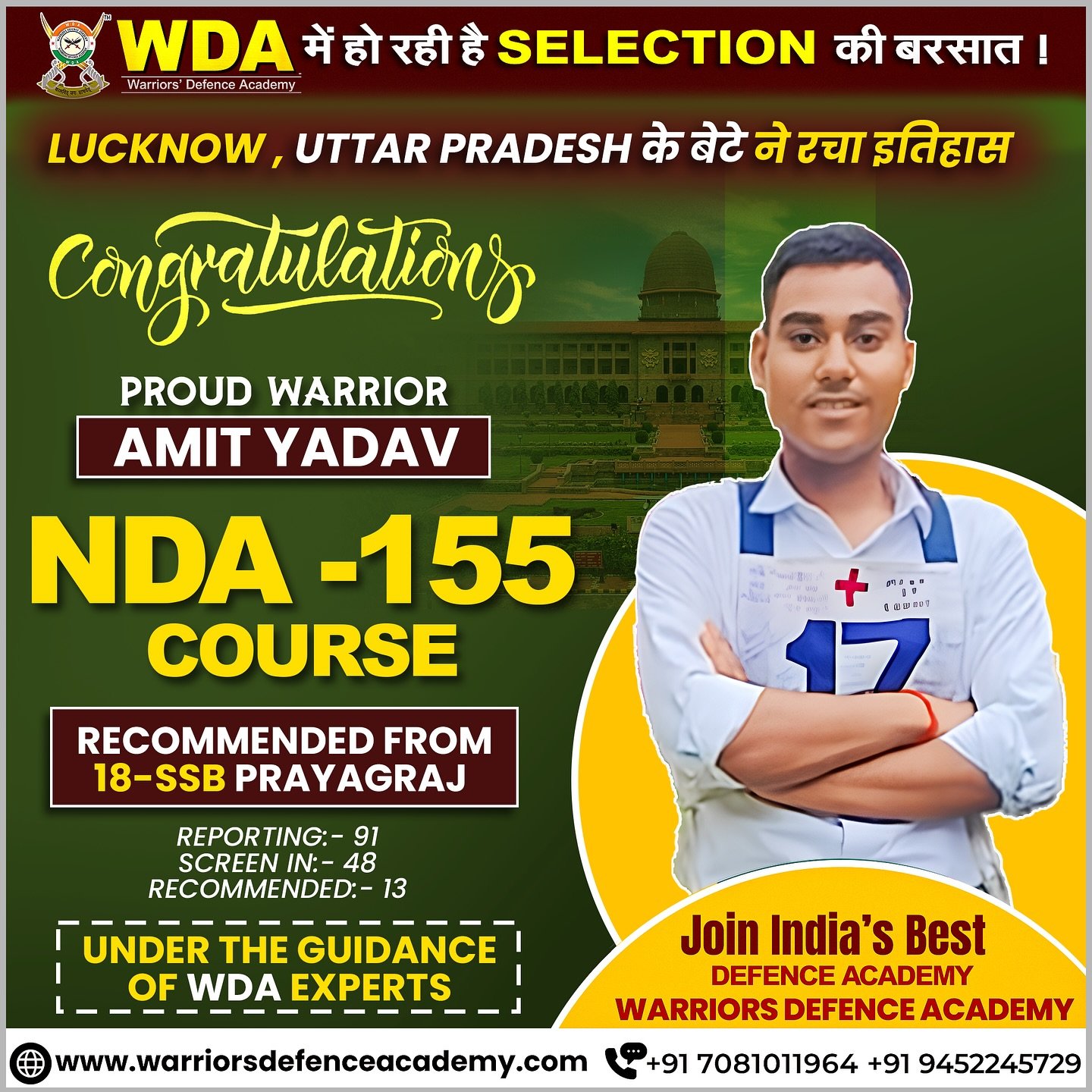 Warriors Defence Academy (WDA), based in Lucknow, has consistently produced top results in NDA, CDS, AFCAT, and SSB selections. Led by a team of ex-defence officers and expert educators, the academy provides structured and disciplined training for aspirants from all corners of India.